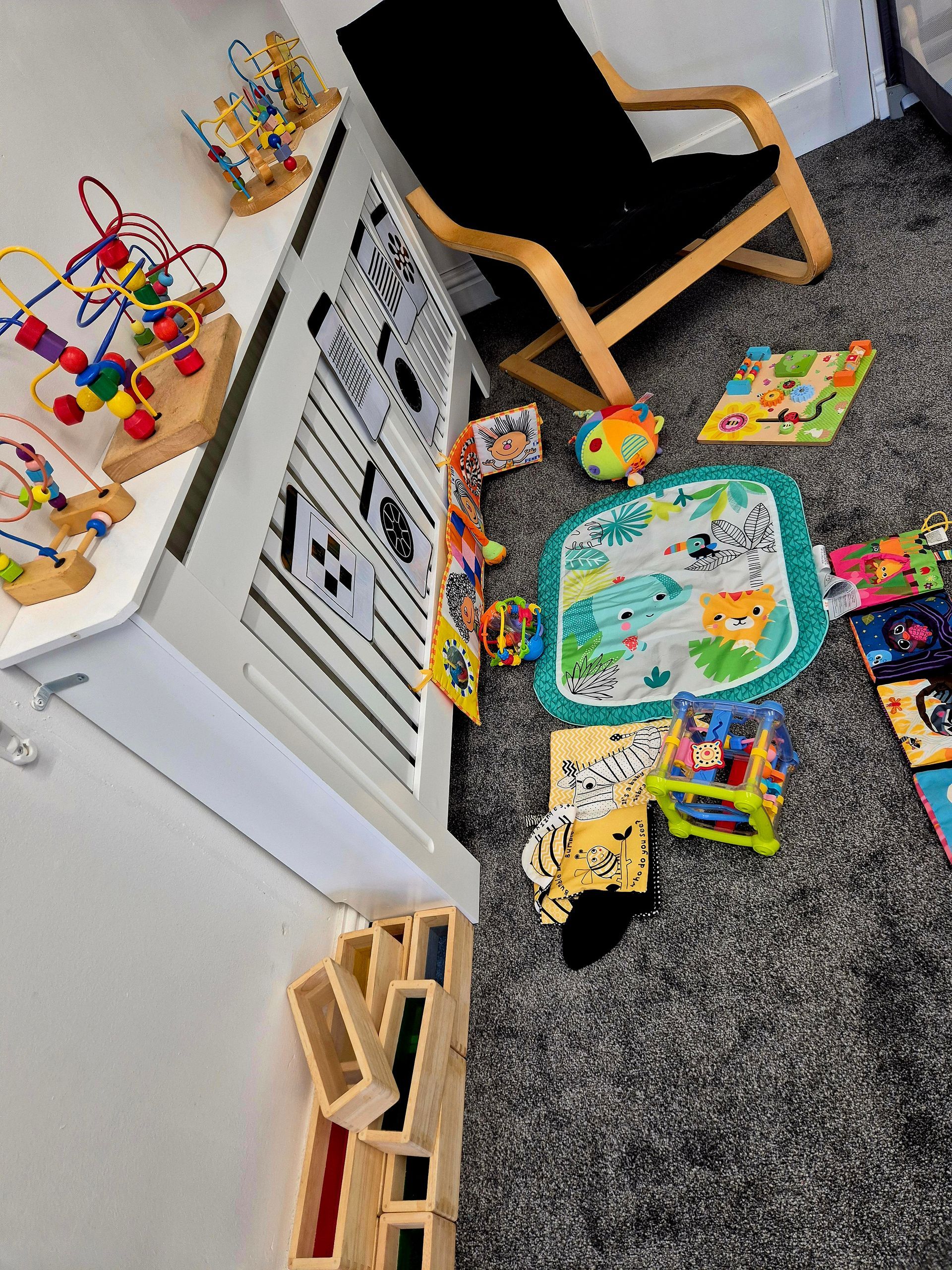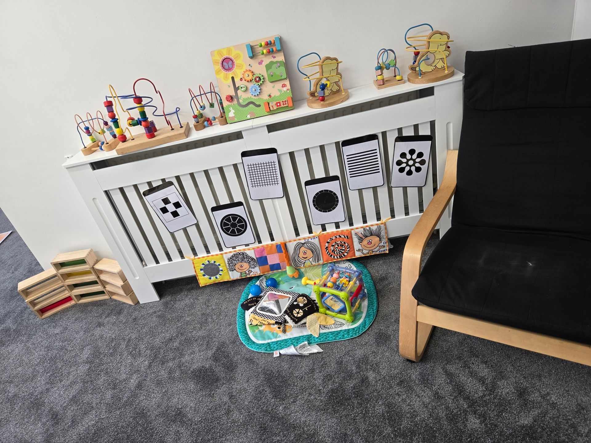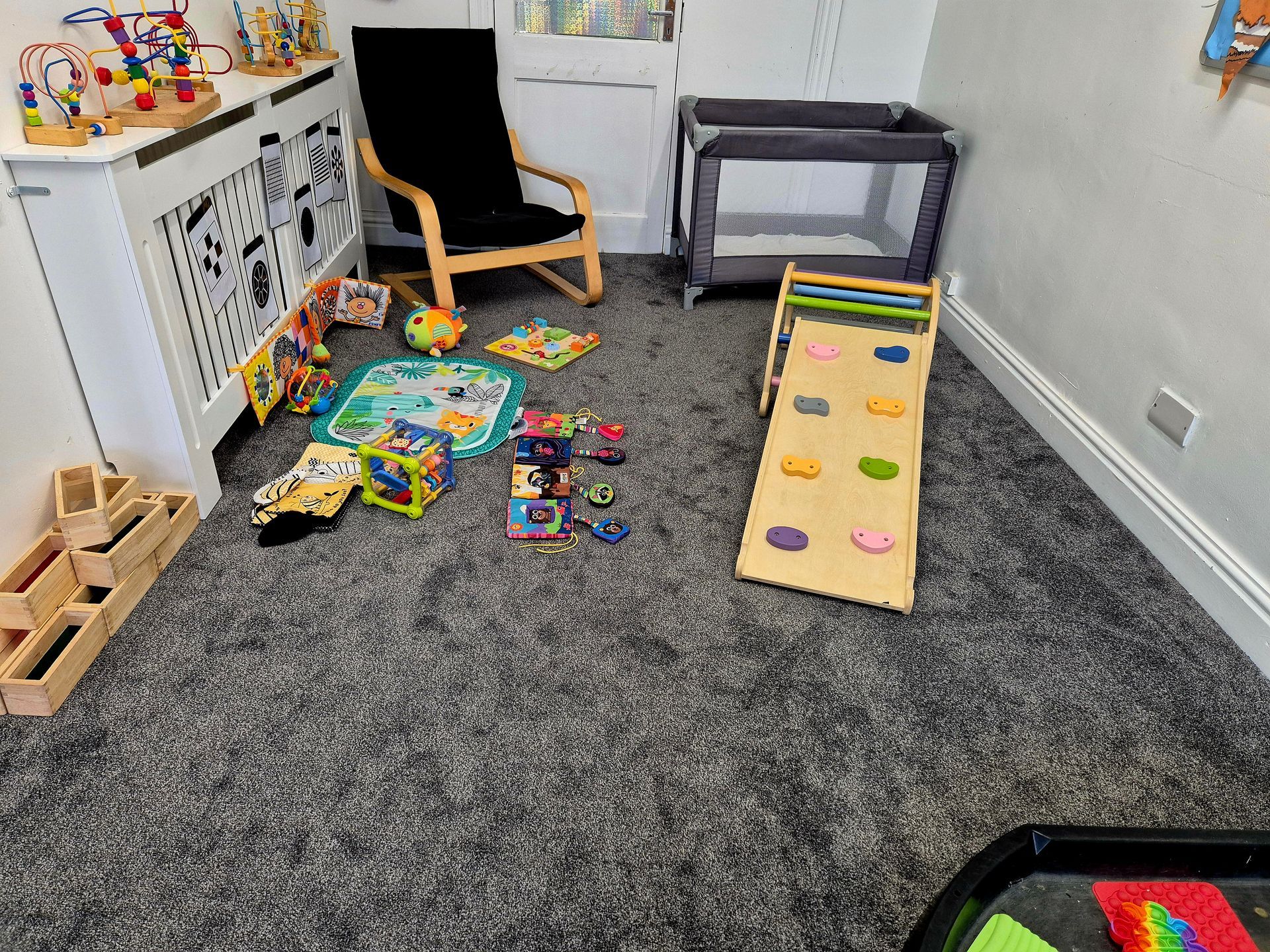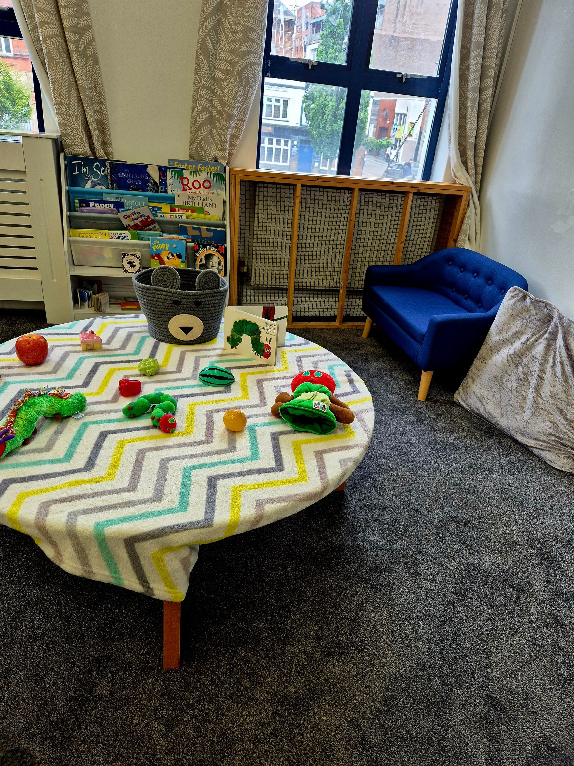 BABY ROOM - Our baby room is designed to promote good development and learning for all of our babies, regardless of age. We have a designated black & white area and a comfy reading area with lots of interactive and sensory books.